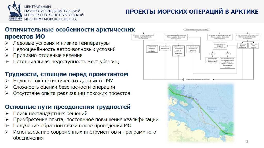 Алексей Петров поделился опытом Института в разработке проектов морских операций, а также привел реальные примеры решения нестандартных задач, с которыми пришлось столкнуться при проведении уникальных морских операций в Арктике.