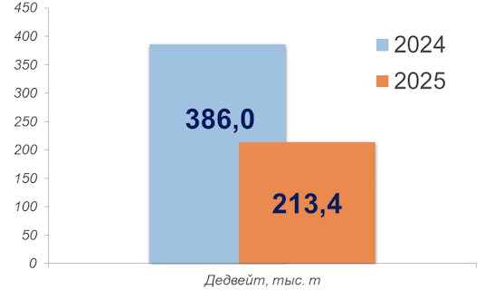 По сравнению с 2024 годом поставки судов по количеству снизились на семь единиц, суммарный дедвейт при этом снизился на 172,6 тыс. т.